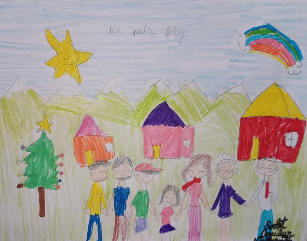 En el primero se aprecia un paisaje, con casas, una familia y un árbol de navidad, todo bajo la consigna “un país feliz”.