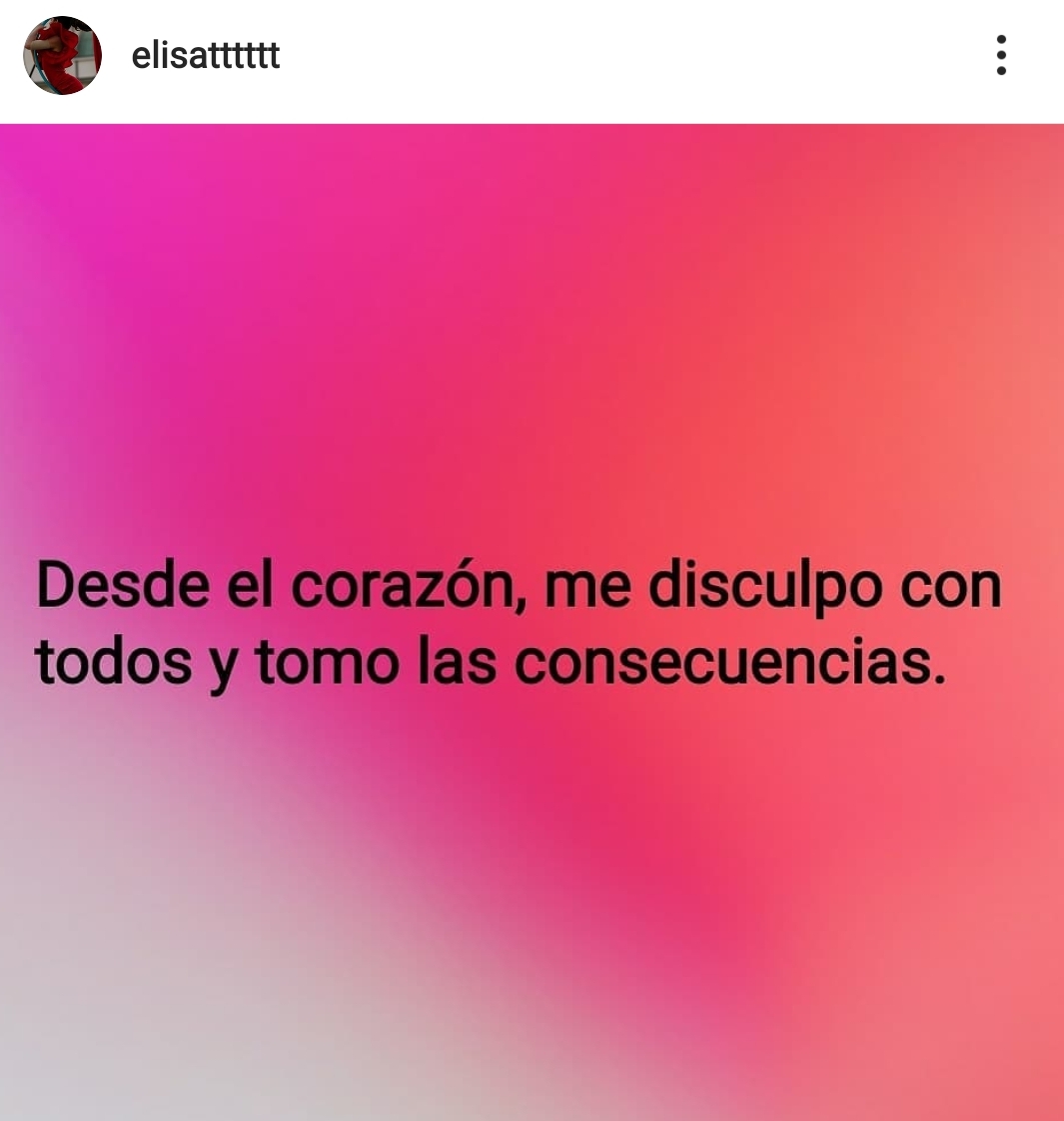Elisa pidió “amablemente que no hablen mal de estas personas porque no estaban conmigo cuando hice esta cosa tan estúpida”.