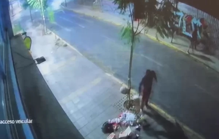 En un video de la calle se observa a tres hombres caminando tranquilamente. Uno de ellos con una caja en su mano, quien cruza para dejarla en el suelo, en una especie de basurero improvisado. Se marcharon enseguida, simulando que no pasó nada.