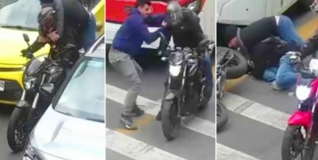 En las fotos, se ve a funcionarios de Carabineros de civil abalanzarse sobre los delincuentes, quienes permanecían detenidos en una avenida esperando la luz verde del semáforo.