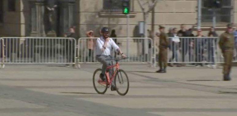 “Día Nacional sin Auto” : Presidente Gabriel Boric Font llega a La Moneda andando en bicicleta