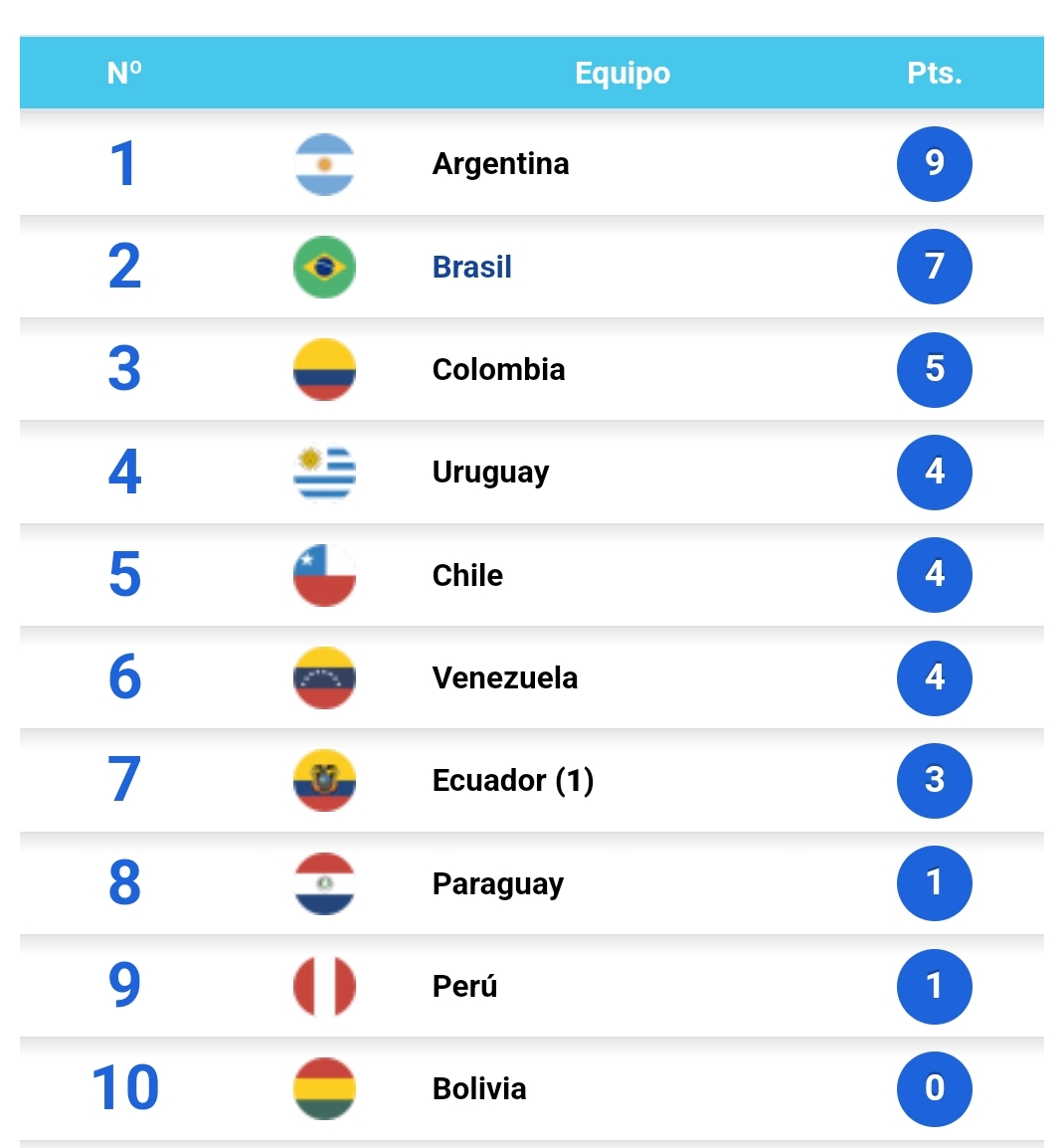 • TABLA DE POSICIONES
