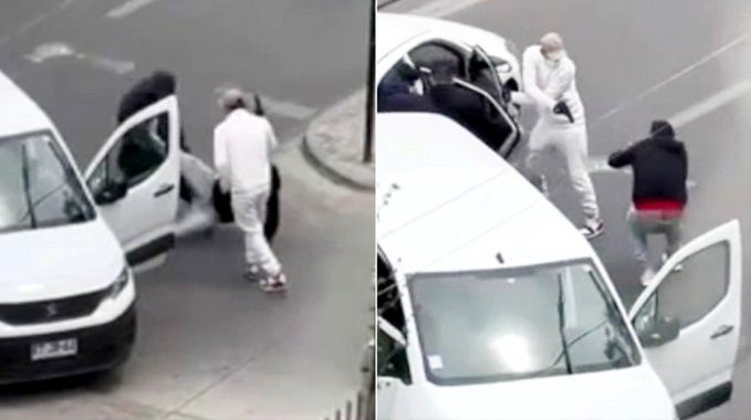 El hecho quedó registrado en un video captado por un testigo, en el que se ve a los antisociales interceptar a un vehículo afuera de lo que parece ser un condominio.