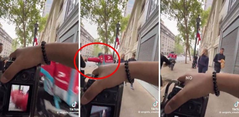 Una persona compartió en su cuenta de TikTok el momento exacto de un ‘lanzazo’ que grabó mientras fotografiaba a un hombre a pasos del Cerro Santa Lucía en Santiago, región Metropolitana.