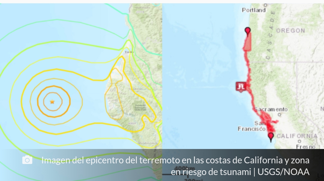 ⭕ Un fuerte sismo de magnitud 7 sacudió el norte de #California, #EstadosUnidos, activando una alerta de tsunami en la región. El movimiento telúrico provocó que el mar se alejara de la costa, un… pic.twitter.com/ZCpC8gcsk9