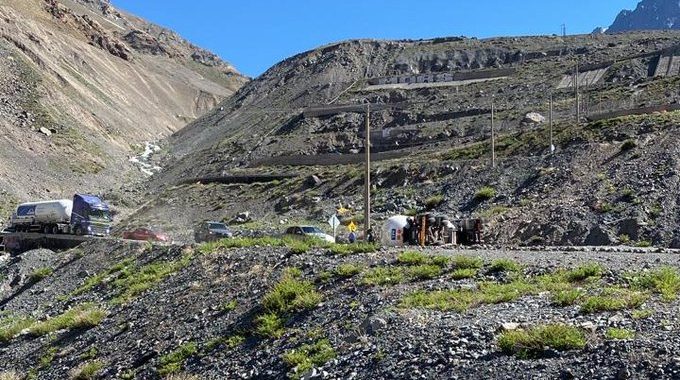 Noticias Chile | Vuelco de camión con gas en la curva de Los Caracoles detiene el tráfico en Paso Los Libertadores