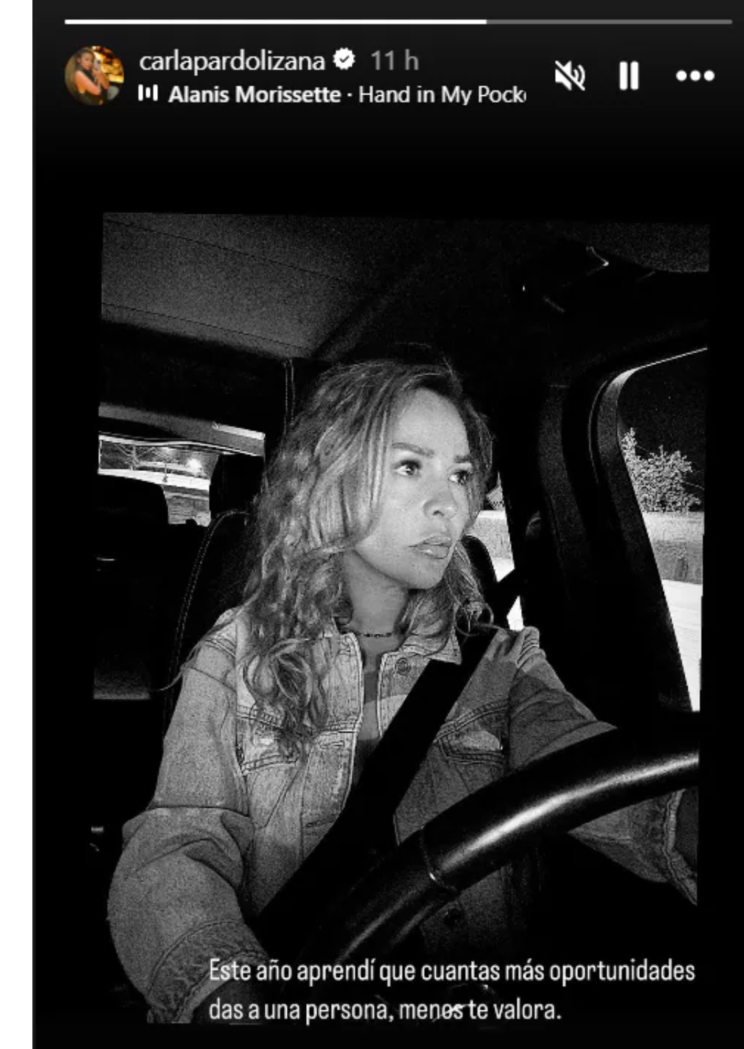 Todo ocurrió  la noche del lunes cuando Carla publicó una oscura foto en sus historias de Instagram, con un duro palo escrito: “Este año aprendí que cuantas más oportunidades das a una persona, menos te valora”.