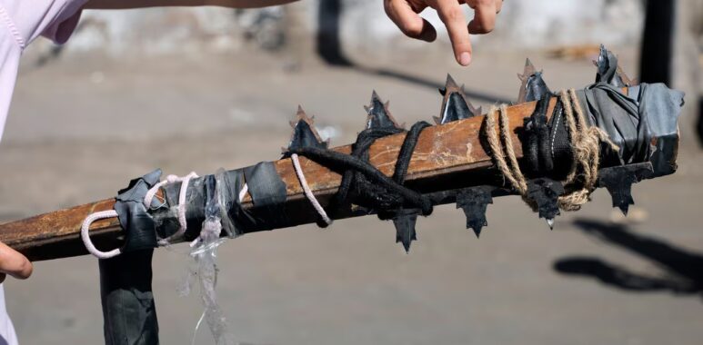 Durante un operativo en las inmediaciones del mercado Lo Valledor, en la comuna de Pedro Aguirre Cerda, Carabineros encontró un arma hechiza de apariencia medieval en uno de los “rucos” desmantelados.