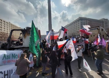 Manifestantes del Rechazo instalan un camión quemado frente al Palacio de La Moneda